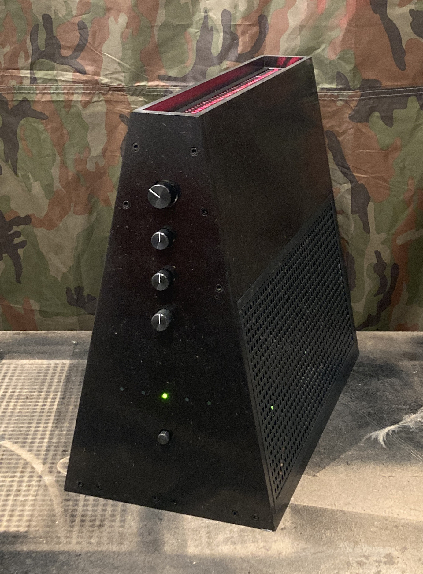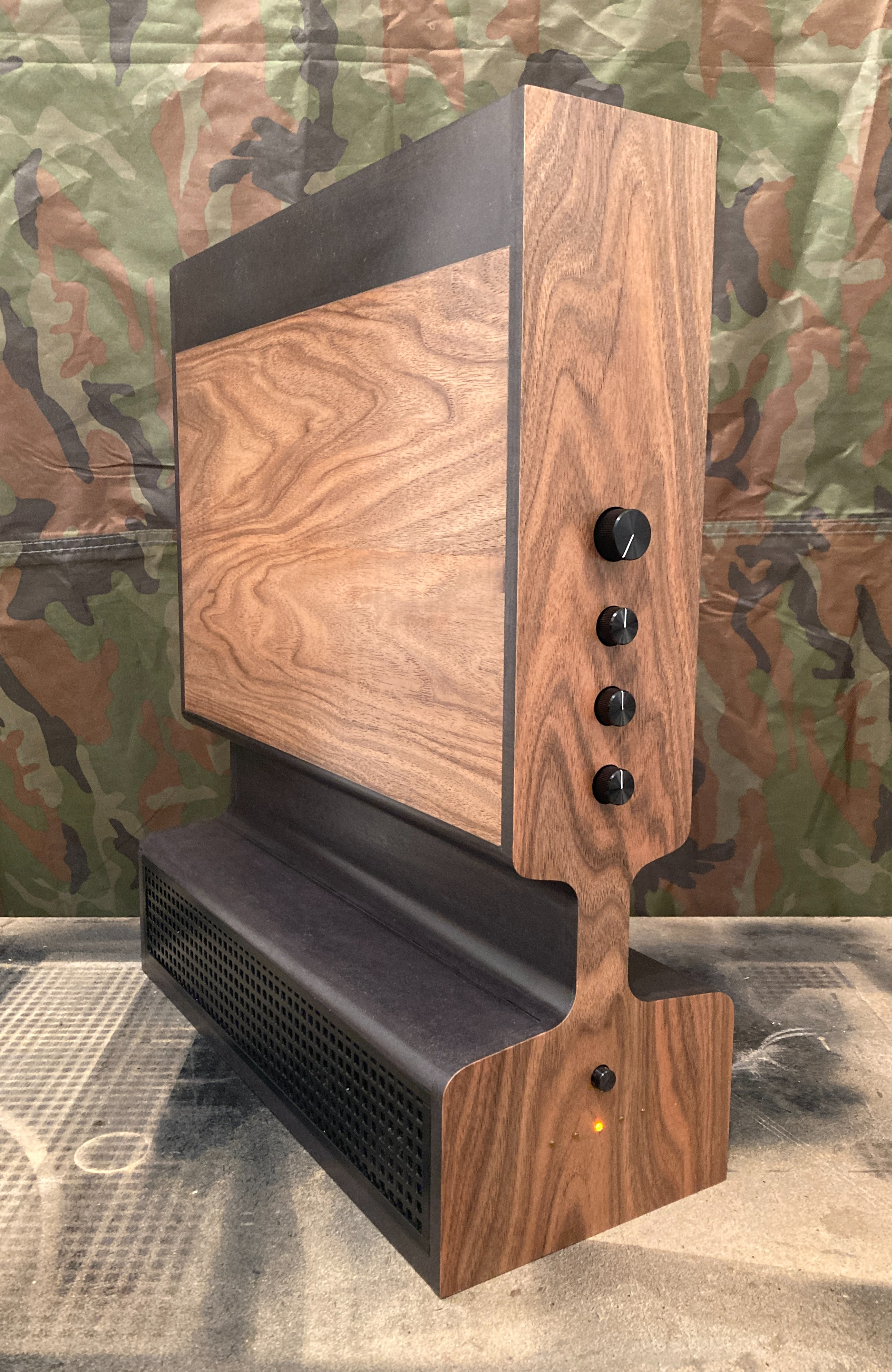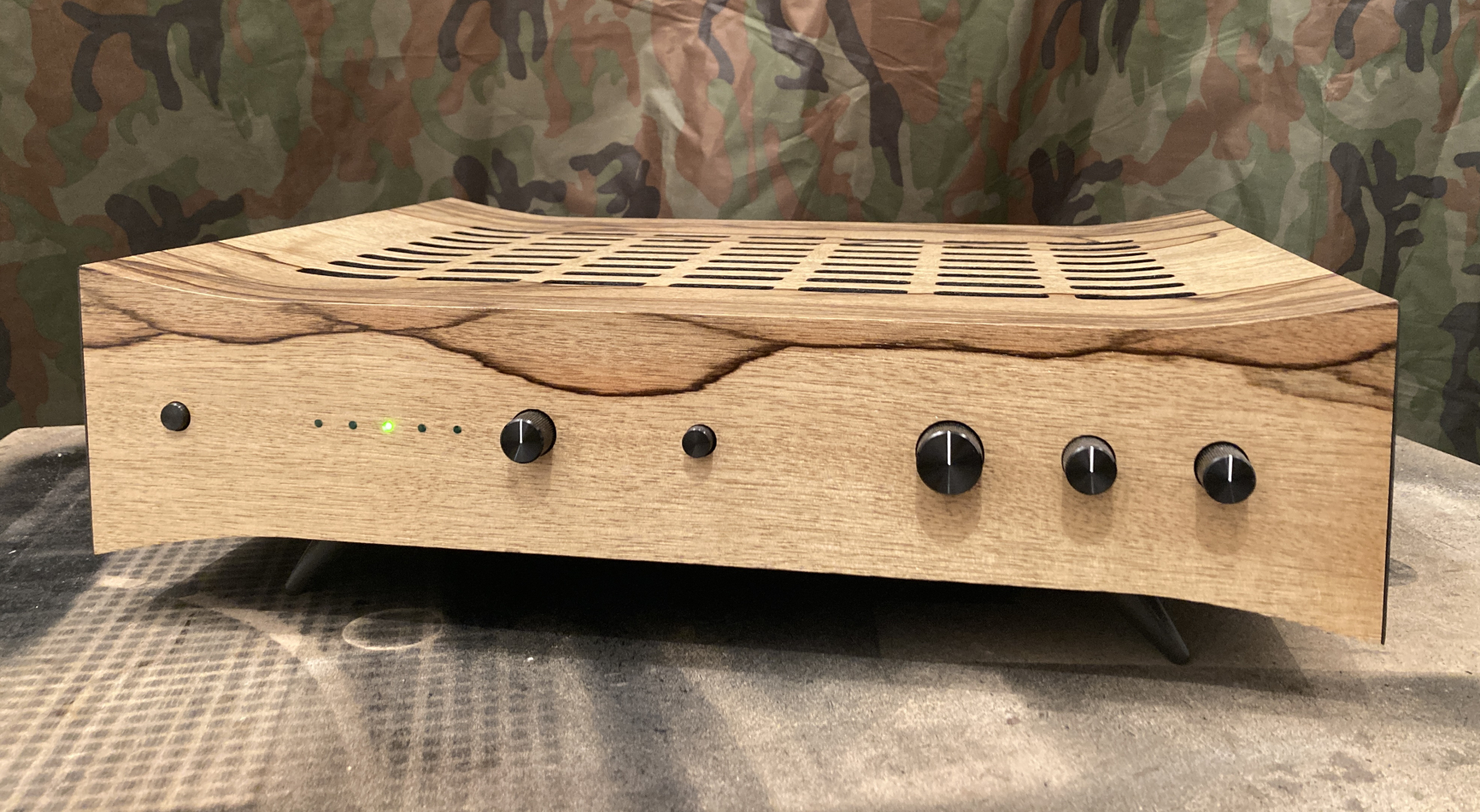 Le SN01 est un amplificateur faible bruit à l'apparence horizontale plus classique. Il est étudié plutôt pour des enceintes de 8Ω mais peut aussi driver des enceintes de 4Ω. Finition fraké bariolé.